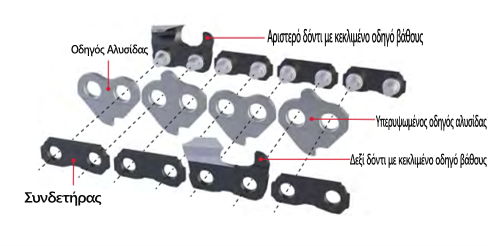 Η ικανότητα κοπής μιας αλυσίδας αλυσοπρίονου εξαρτάται επίσης από το υλικό που βρίσκεται στα δόντια της.