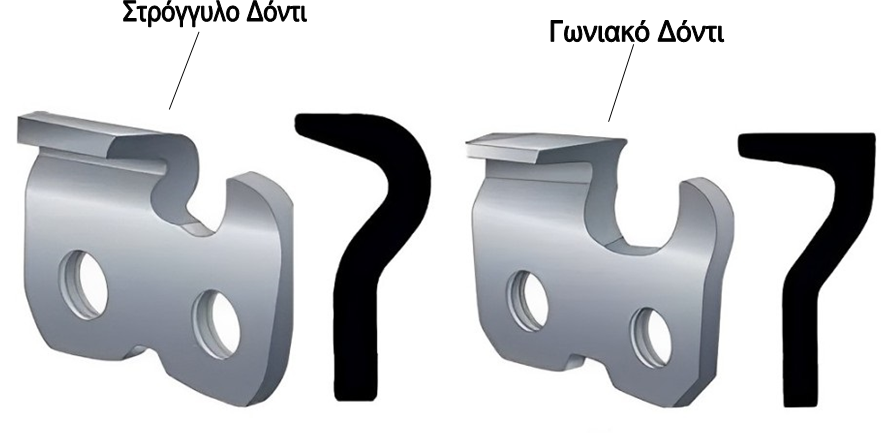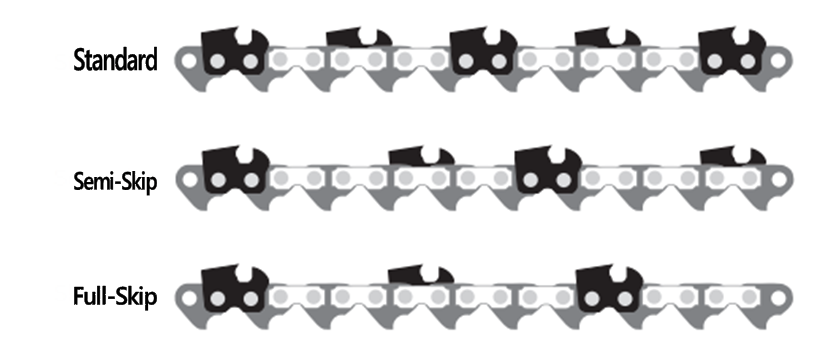 Υπάρχουν τρία βασικά σχέδια δοντιών κοπής στις σύγχρονες αλυσίδες πριονιού: Standard, Semi-Skip και Full-Skip.