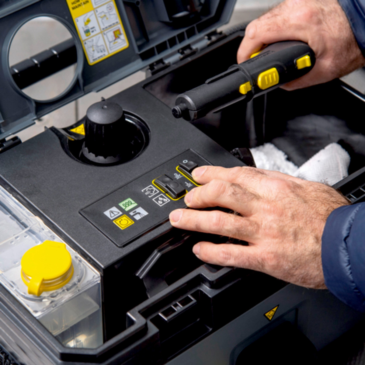 Χάρη στον μοναδικό σχεδιασμό του κουτιού all-in-one, είναι πολύ συμπαγές, στιβαρό και ανθεκτικό, είναι επίσης εκτενώς εξοπλισμένο και πολύ εύκολο στη χρήση: Ο ατμοκαθαριστής SG 4/2 Classic εντυπωσιάζει με εξαιρετικά αποτελέσματα καθαρισμού, εξαιρετική τιμή/ αναλογία απόδοσης και μέγιστη απόδοση. Το ελαφρύ μηχάνημα, με βάρος μόνο 7,5 κιλά, είναι ο πιο συμπαγής επαγγελματικός ατμοκαθαριστής στην κατηγορία του, είναι έτοιμο για χρήση σε μόλις 3 λεπτά και με πίεση ατμού 4 bar προσφέρει βαθύ καθαρισμό και απολύμανση χωρίς τη χρήση χημικών. Πάγκοι, εξοπλισμός διανομής, πλακάκια, εστίες, φούρνοι και πολλά άλλα καθαρίζονται σχολαστικά μέχρι τη μικρότερη σχισμή – ανεξάρτητα από το επίπεδο μόλυνσης. Σε ιδιαίτερα επίμονες περιπτώσεις, η λειτουργία VapoHydro βοηθά με το ζεστό νερό και αφαιρεί αποτελεσματικά τη μεγάλη μόλυνση και τα λίπη, το δοχείο νερού μπορεί να αφαιρεθεί και να γεμίσει ανά πάσα στιγμή. Αξεσουάρ όπως ο σωλήνας ατμού, το ακροφύσιο χειρός, το ακροφύσιο πίδακα, το ακροφύσιο ισχύος, η στρογγυλή βούρτσα, η επίπεδη βούρτσα, η ξύστρα ατμού και το κάλυμμα μικροϊνών αποθηκεύονται όλα απευθείας στο μηχάνημα – ένα ακροφύσιο δαπέδου διατίθεται επίσης προαιρετικά.
